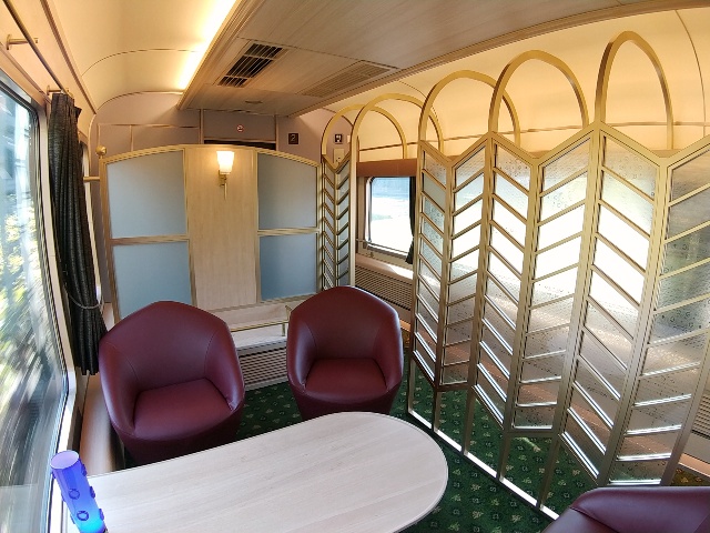 往復とも同じタイプの座席と言うのは芸がナイので、帰りはサロン席