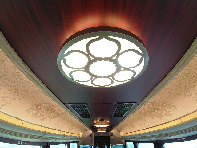 天井の照明器具や文様も正倉院っぽいデザインになってますね。