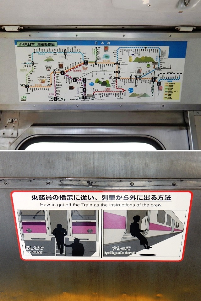 ドア周辺の路線図や非常時の案内なども、秋田地区仕様の物が
