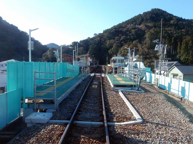 ホームもそのままですが、牟岐方の分岐器を撤去して単線構造