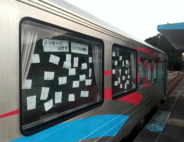 なるほど車内には「お別れメッセージ」らしき物が多数貼られてます。