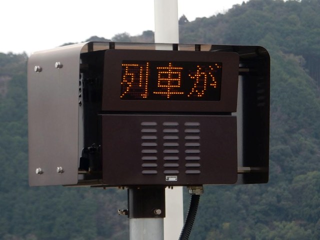踏切の電光表示は「列車が/きます」。別にイイんですが何となく