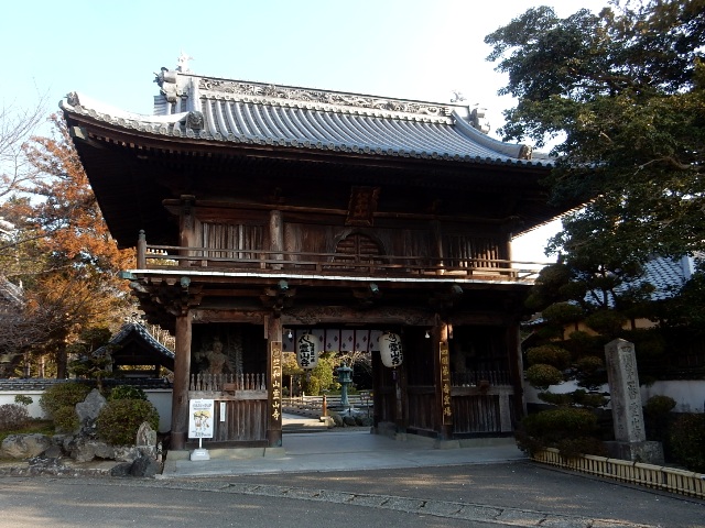 山の中腹に山門があり、付近に町(上板町)の天然記念物に指定