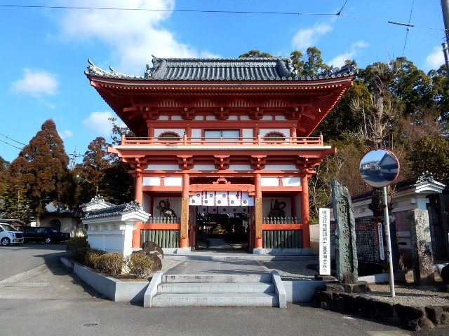 …比較的最近に再建されたと思われる新しい山門が見えますな。