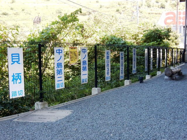 敷地の柵に、何故か踏切名を書いた看板が多くありました。