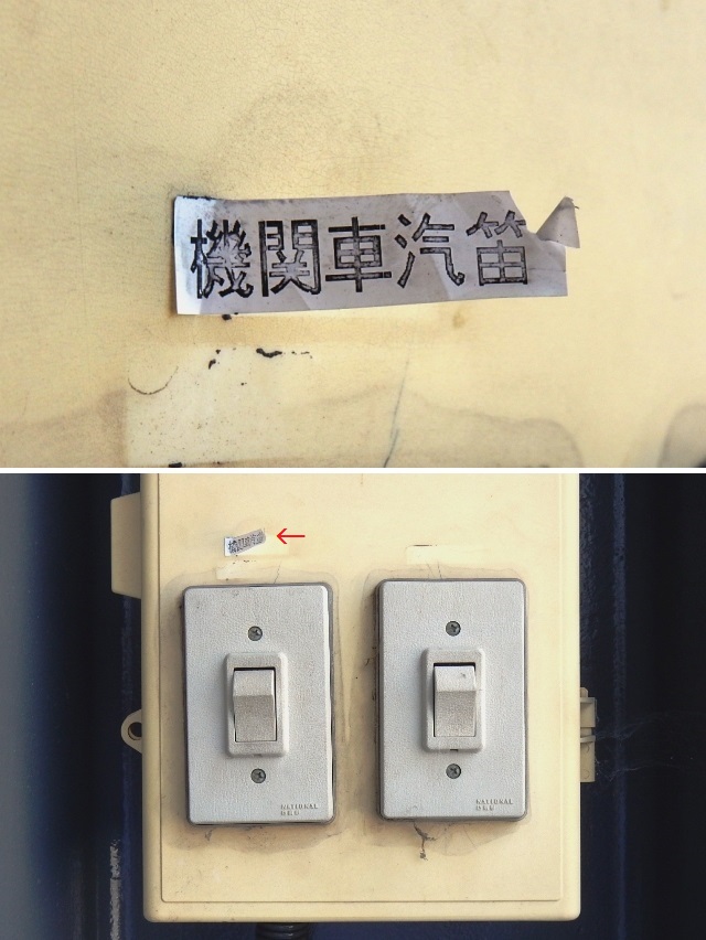 そして照明器具かと思ったスイッチの1つに「機関車汽笛」と書いた