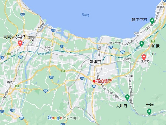 まずホテルから現地までの経路ですが、カーナビでは立山インター