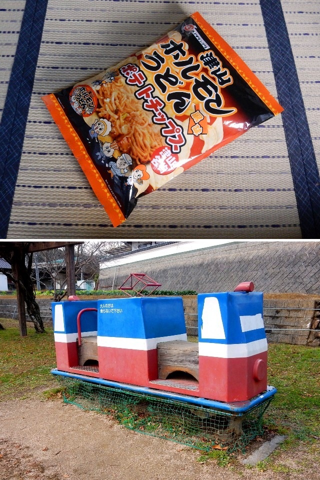 …津山名物のホルモン焼きうどん味のポテトチップスですって。