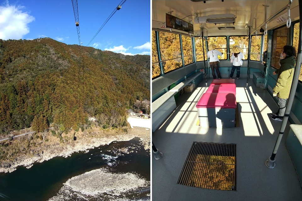 車内にはガイドの女性が乗っており、風景やロープウェイの解説を
