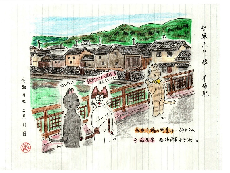 駅にして2つ戻った平福にやって来ましたクラ駅長です。