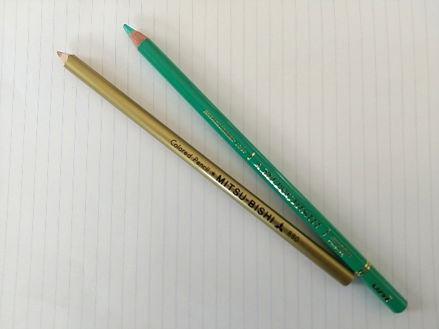 そして少し前からの懸念事項だった色鉛筆は、エメラルドグリーンと