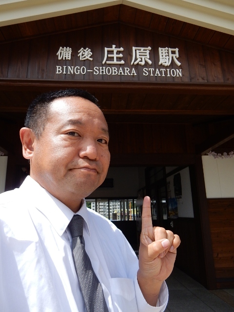 の主要駅となる備後庄原にやって来ましたクラ駅長です。