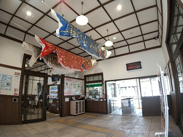 駅舎のコンコースに相当する広間には鯉のぼりが飾られてました。