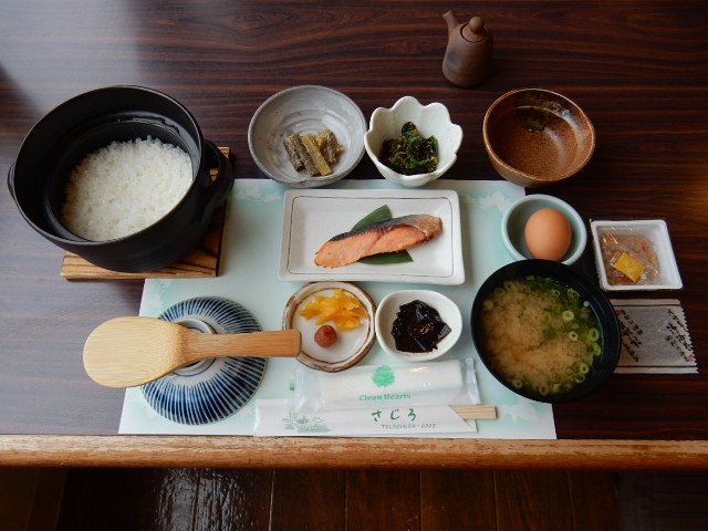 朝食は和食と洋食が選べます。和食の御飯は御当地の「仁多米」
