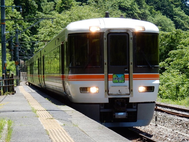 その千代駅滞在中に撮った、下りの特急「伊那路」。…近くに速度