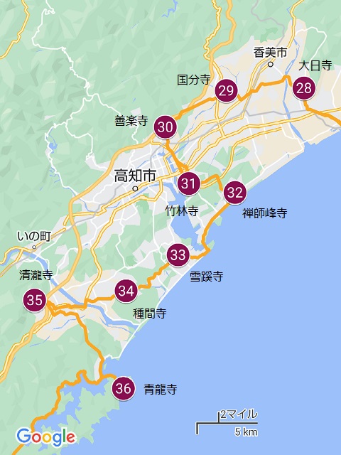 高知市を中心に土佐市~香美市付近に8箇所ほどの札所が点在