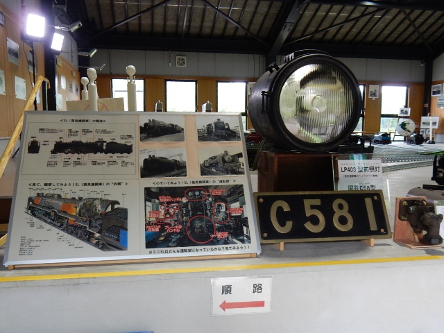 実物の機関車の物としては前照灯やナンバープレートなども展示