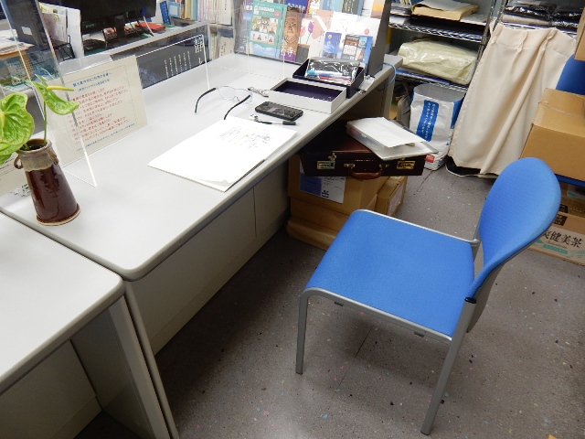 商品の箱が積んであった所を片付けて椅子を貸して下さいました。