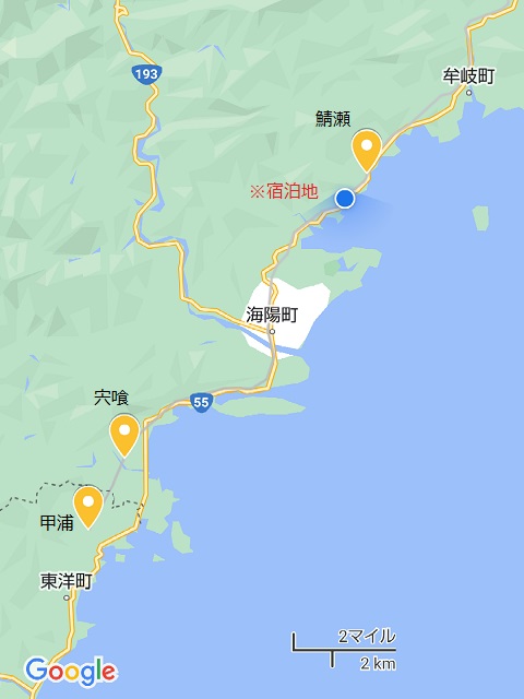 そんな感じで今回の宿泊地なんですが、日和佐や阿南まで戻るのは