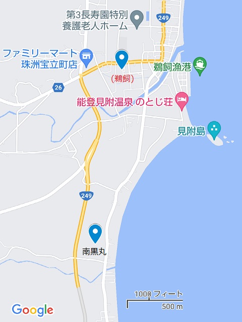 見附島の最寄り駅となる鵜飼は以前に描いたので、今回は南黒丸