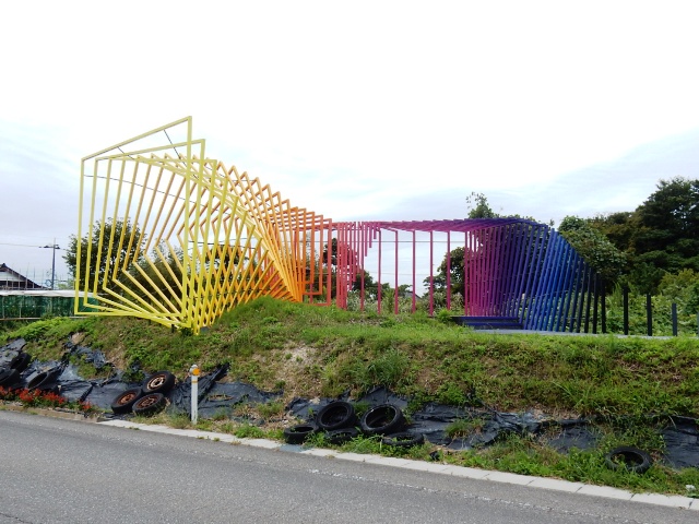 この畦道を進んで別の舗装道路へ出た所に、コレまた芸術祭の作品