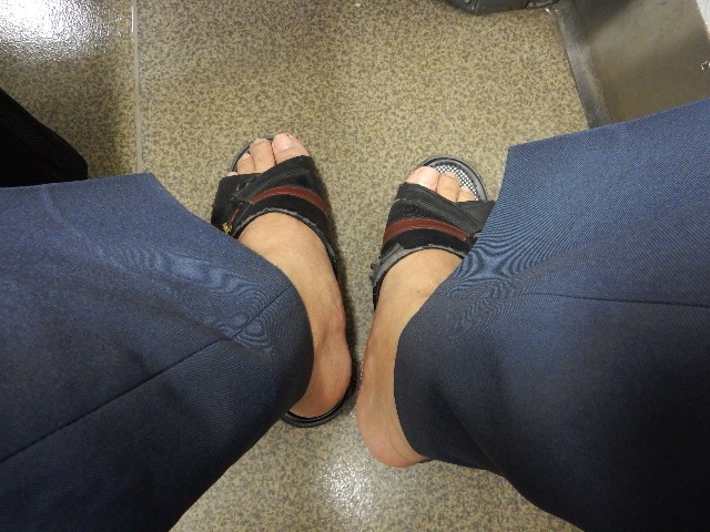 サンダル履きです。…別にいいじゃない。