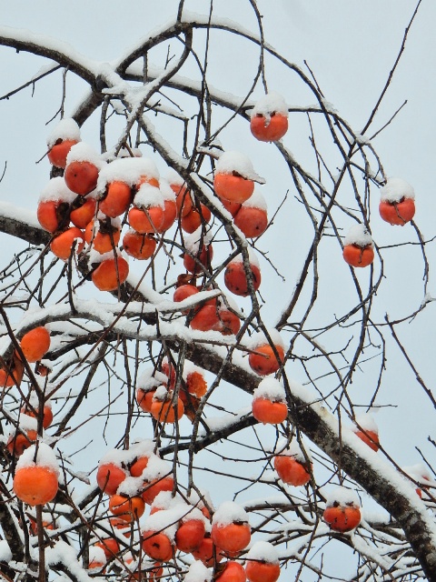 ホームにある南天と、駅舎の脇にあって構内からよく見える柿の木
