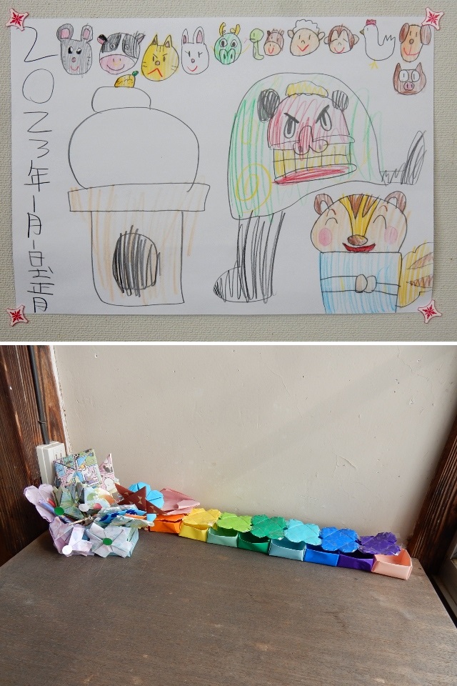 駅舎内には近くの小学校(恐らくは支援学級)の子供たちが描いた