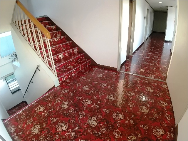 の端っこの階段みたい。今時こんなデザインの床材はあるのか?