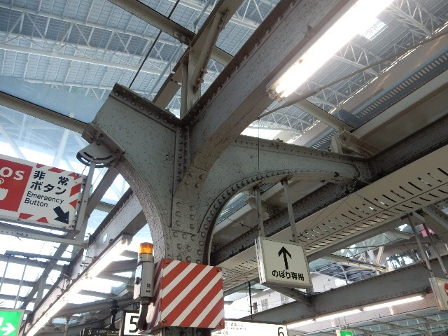 真ん中寄りの大屋根の下も、昔の上屋を支えてた鉄骨を一部残して、