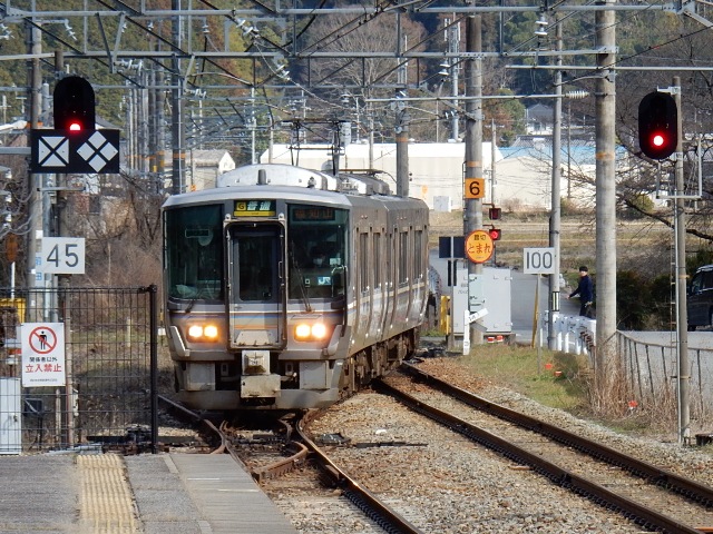 …福知山方面行き(左)は、左側通行を無視して入線してくる感じに