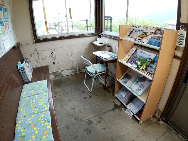 ホームが嵩上げされており、待合室は少し低い位置にあります。