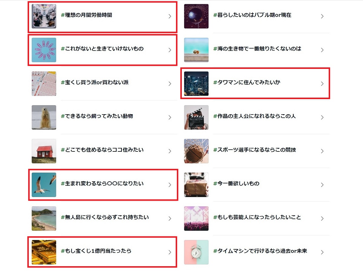 「宝くじ」「飼ってみたい動物」「タイムマシン」などは以前の記事で