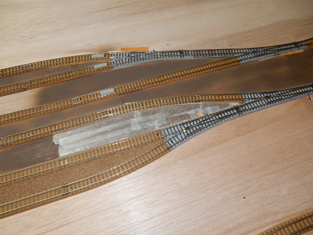 分岐器は道床の色が違うので、この周辺は灰色のバラストを混ぜて
