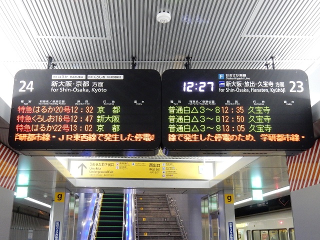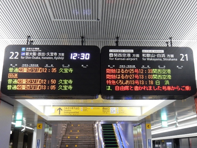 隣の24番線は新大阪・京都方面へ特急「はるか」「くろしお」が出る