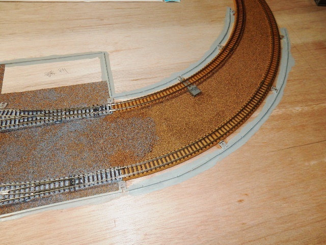 内陸線のバラスト撒きをやってますが、バラストは一応、茶色と