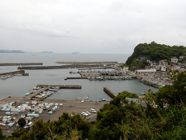 現地の雑賀崎は漁港のすぐ背後に切り立った山が迫ってる地形で、