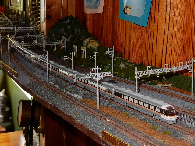 そしてメインのカウンターに面して、小規模な鉄道ジオラマがあり