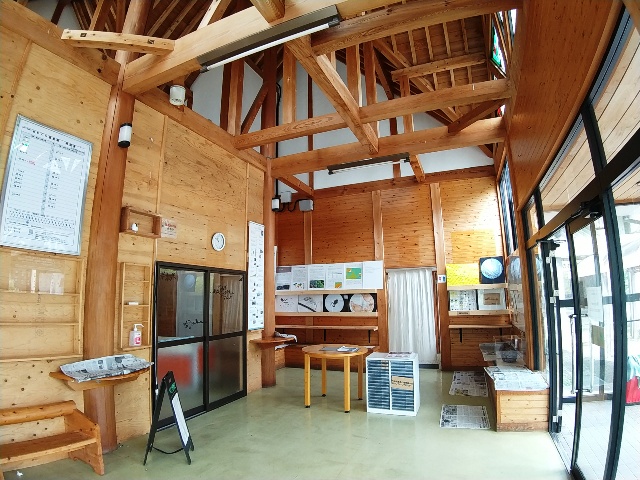 駅舎内は山小屋調の内装になっており、利用者が自由に使える