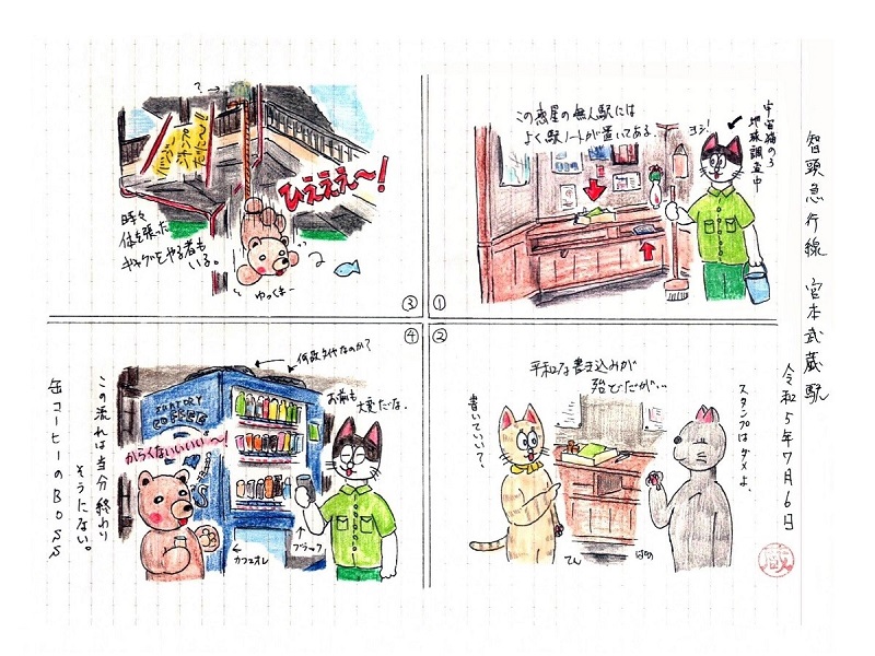 では智頭急行線の駅ノートに戻ります。4巡目の最後は宮本武蔵
