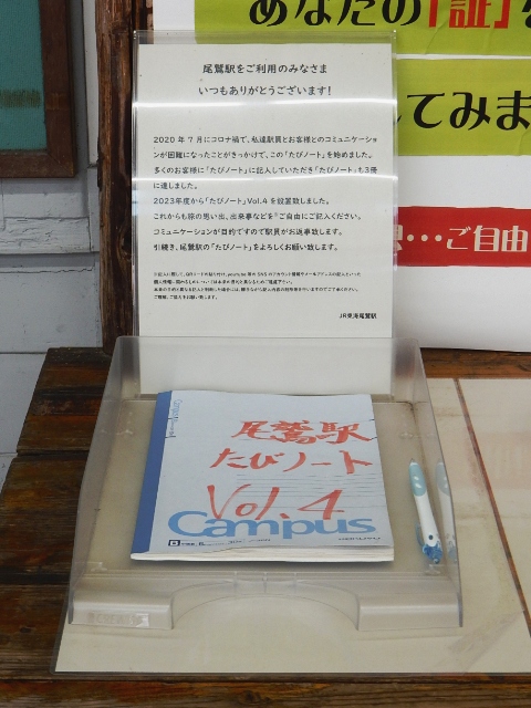 駅ノートは前後の特急停車駅(熊野市・紀伊長島)と同様、同駅で