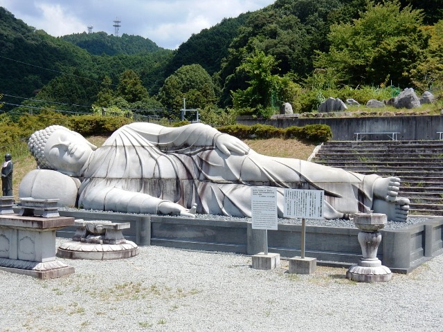 右が境内の真ん中にある壺阪大仏(釈迦如来)、左が高さ20mの
