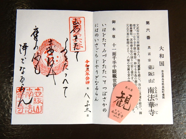 壺阪寺と言う寺号は通称であり、正式には「壺阪山 南法華寺」と
