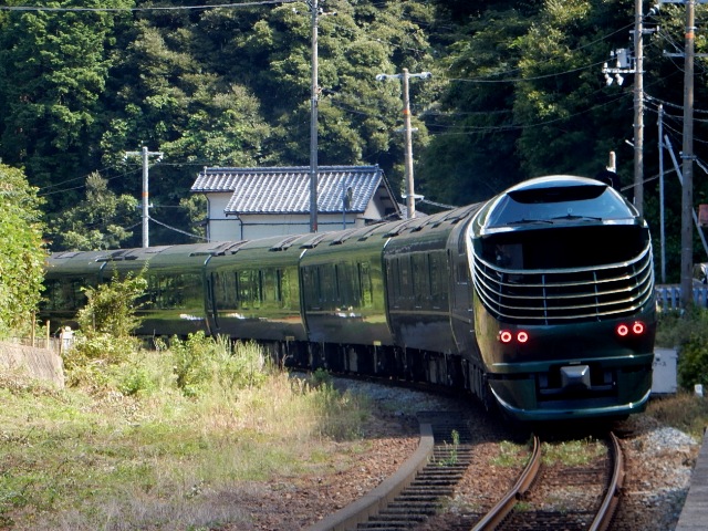 …まず鎧駅で豪華列車「トワイライト瑞風」。日々運転されてるのは