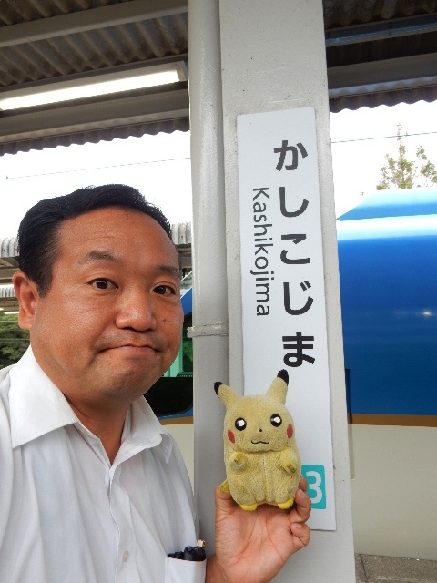 と言う事で賢島駅にて待ち合わせました。…ピカチュウ親方も指定券
