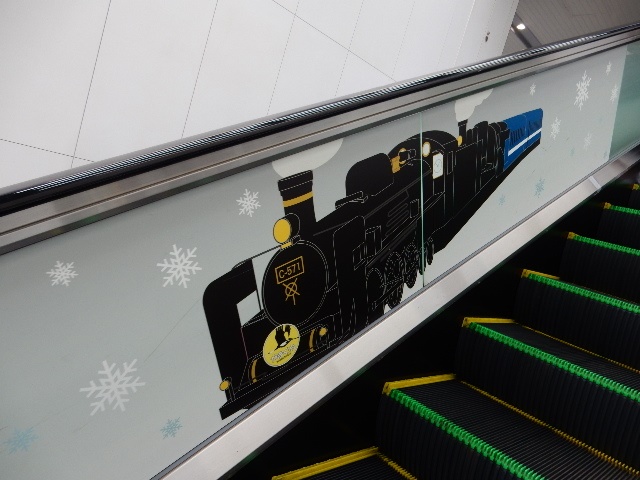 SLやまぐち号は1番線から発車します。ホームへ向かうエスカレーター