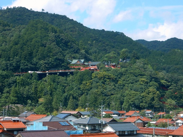 津和野の町に入る直前、山の中腹に見えるのが有名な津和野の稲荷