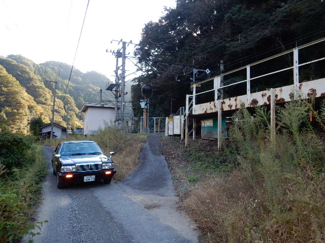 途中の道路から駅が見えますが、山の谷間に作られた信号場の雰囲気