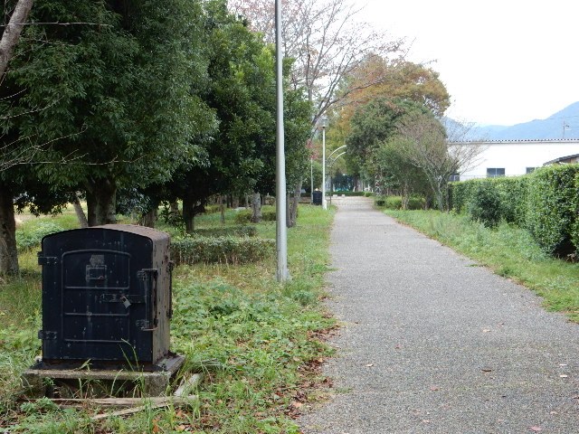 自転車可の遊歩道として整備された廃線跡が約1.5kmに渡って続いて