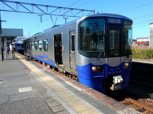 ココから運転系統が変わるので、乗り入れてきたえちごトキめき鉄道